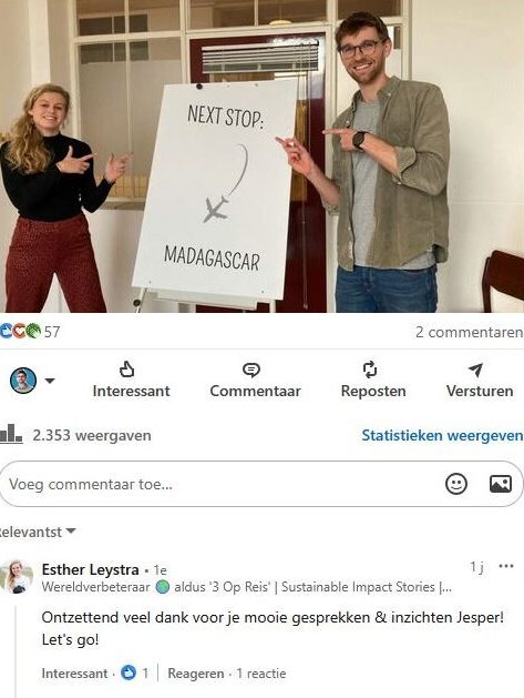 Aan het eind van het traject besloot ze haar hart te volgen om vrijwilligerswerk te doen op Madagascar en een functie als Duurzaamheidsmakelaar te gaan doen bij Gemeente Assen.